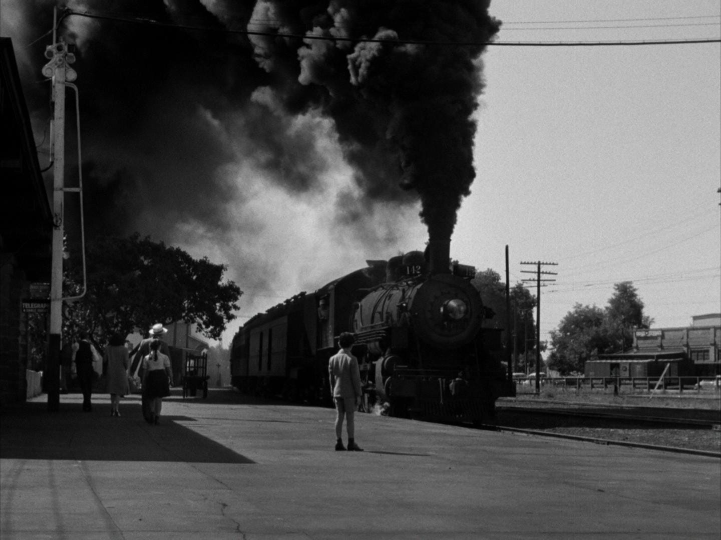 Uncle Charlie is that sickness made manifest. On the train to Santa Rosa (which arrives in a cloud of black smoke), he feigns illness to keep a low profile from the other passengers, but he is sick in another sense. We’re told, through exposition by his sister Emma, that the symptoms began after a childhood accident from which he never quite recovered.